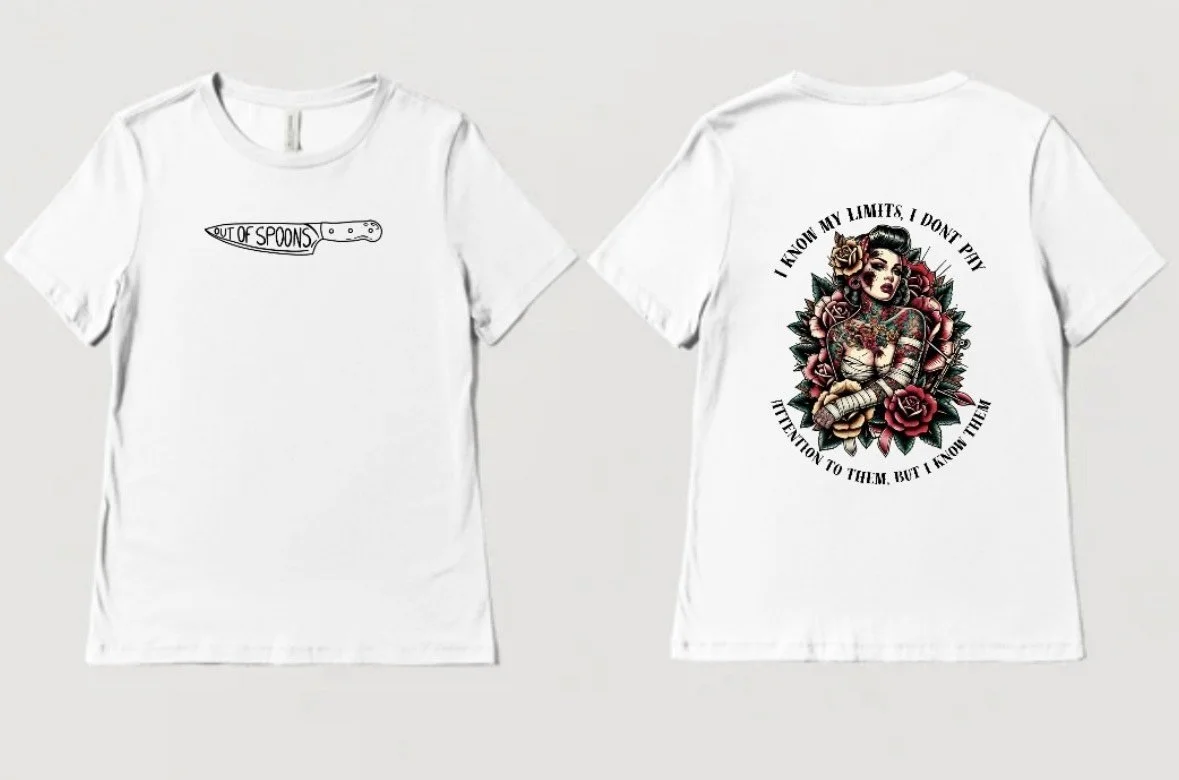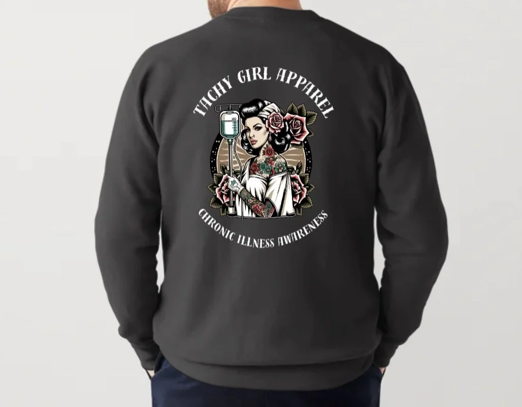 Categories: All Awareness Sweatshirts Awareness T-shirts All | Awareness Sweatshirts | Awareness T-shirts | Sjogrens Dry Eyed Tee from $35.00 You Don't Look Sick Tee from $35.00 Salty Bitch Tee from $35.00 I Like My Men Like I Like My Salt from $35.00 A Potsie Supporter from $35.00 I Fall Apart EDS Tee from $35.00 EDS Throw Me Daddy Tee from $35.00 Fluorescent Lights POTS Tee from $35.00 i know my limits tee from $35.00 Butterfly rash Lupus Tee from $35.00 Medical Zebras EDS Awareness tee from $35.00 Spoonies Never Say Die Sweatshirt from $50.00 Tachy Girl Sweatshirt from $35.00 Invisible Illness Tee from $35.00 Salt Me Up Tee from $35.00 Salty About Being Compressed Tee from $35.00 Mr. Sodium Tee from $35.00 Spoonies Never Say Die Tee from $35.00 Chronically Chill Tee from $35.00 Generational POTS Tee from $35.00